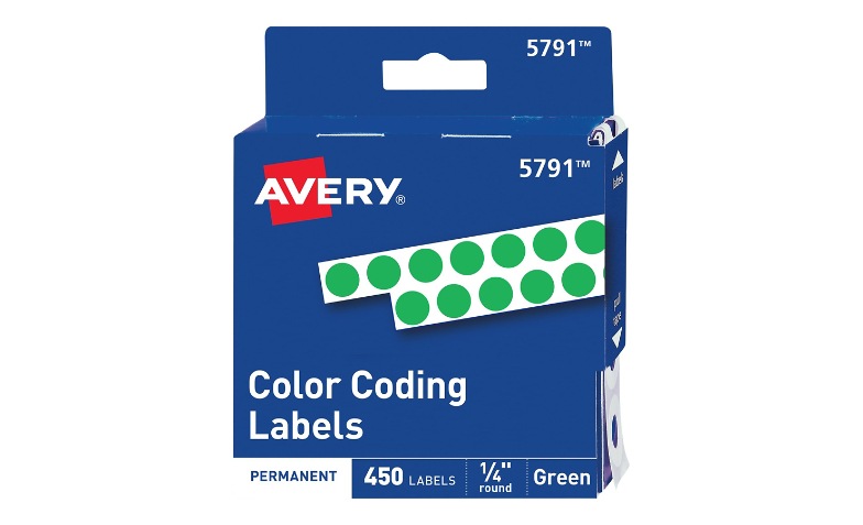 Avery Color-Coding & Round Labels - Office Depot Avery® Color-Coding Permanent Labels, Non-Printable, Round, 1/4" Diameter, Yellow, Pack Of 450 Dot Stickers. $5.89 / pack. Qty-Quantity + Compare . Item 191320 Avery® Color-Coding Removable Labels, Non-Printable, 5795, Round Stickers, 1/4 Inch, Assorted Colors, 768 Dot Stickers Total ...